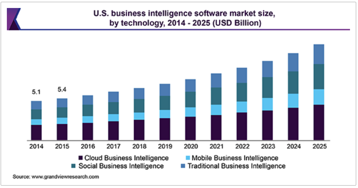 There’s no doubt about it: the popularity of business intelligence, a.k.a. technology that helps businesses make sense of their vast amounts of data, is on the rise across all industries. A recent report by Grandview Research predicts a steady 10% compound annual growth rate for the business intelligence software market in North America in the next five years.